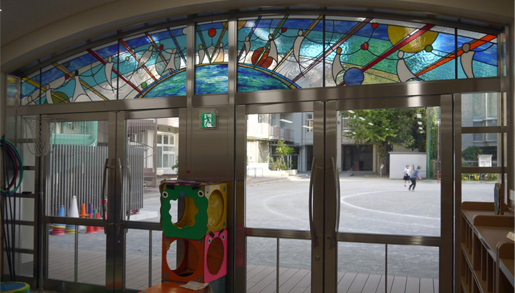 中央区立有馬小学校に併設して建てられた幼稚園舎で、