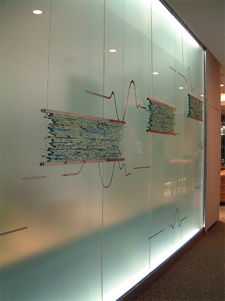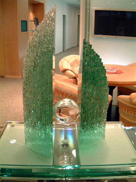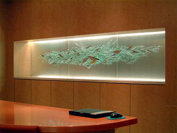 この作品は民間IT関連企業さんからショールームを作るにあたり何かガラスでのアートーワークを