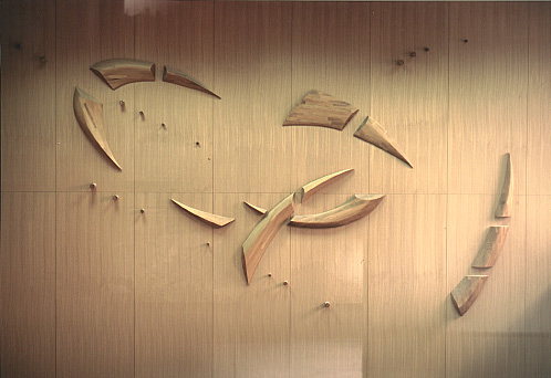 躍動 (エントランスホール壁面 木レリーフ)