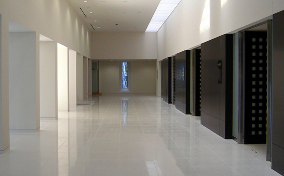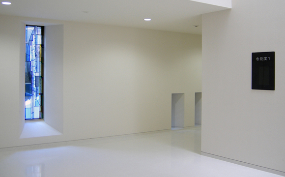 また、建築計画の崇高で荘厳な直線と待合いホール「光の庭」彫刻の曲線を取入れた